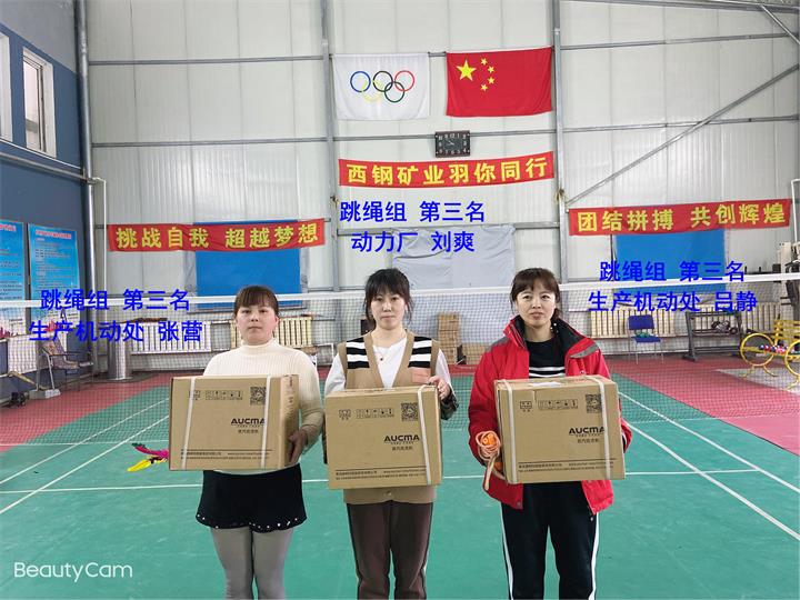 為“建和諧礦山,揚(yáng)女工風(fēng)采”,在“三八婦女節(jié)“來臨之際,為感謝長(zhǎng)期付出辛勤汗水的全體女職工,調(diào)動(dòng)女工強(qiáng)身健體的積極性,公司工會(huì)特舉辦“三八節(jié)女工跳繩、踢毽子比賽”,此次活動(dòng)共有50人次參與,通過預(yù)賽、決賽的方式,分別角逐出一等獎(jiǎng)一名 ,二等獎(jiǎng)兩名,三等獎(jiǎng)三名,比賽結(jié)果如下: